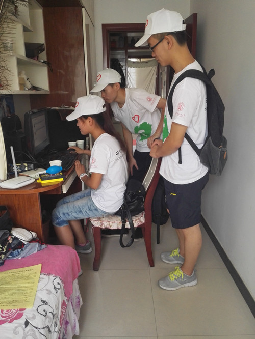 首先,到达的是西湾村,我们为他们简单地维修了一下音响以及解决他们在使用办公软件时出现的问题。随后,去往景苑社区进行电脑维修服务。为了了解哪些居民需要我们的帮助,在派发关于计算机知识的宣传单的过程中,我们趁此机会询问了他们。当得知一个居民家中的电脑不知为何开不了机的消息时,服务队的队员们立马随同居民一块赶到家里 ,对电脑进行诊断与维修。由于电脑的问题比较繁杂,队员们先拆主机对电脑进行较彻底的除尘工作,使得电脑不再出现间断开机状况,而且主机的温度也恢复到正常水平。鉴于电脑系统已经不能适应需要,我们还为该居民重装了电脑系统,升级到windows7。当这些都完成了以后,我们还主动地清理了维修时留下的垃圾。受到我们帮助的居民不仅向我们表达了感谢之情,还热情地送来了西瓜和水,但我们作为服务的人员,觉得我们这次的所作所为都是应该的,便婉然谢绝了。