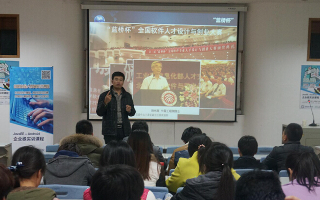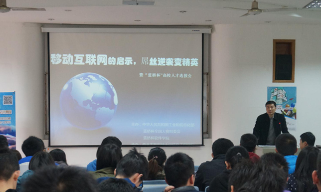 3月13日下午,蓝桥杯大赛组委会、蓝桥杯软件学院的高校联络部主任张磊老师在学院副201教室举办了主题为“就业有未来,蓝桥杯在行动”的专家讲座。公司2012级近200名同学参加了本次讲座,讲座由公司党委副书记何卫军老师主持。
