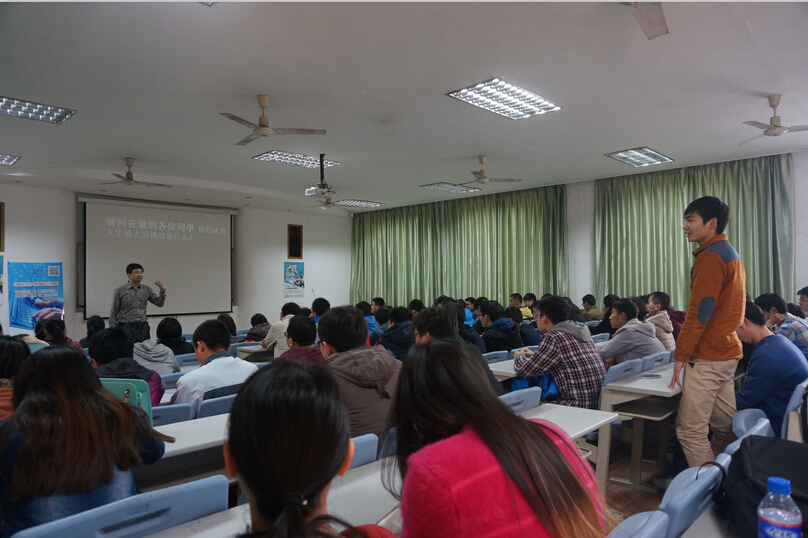 在一段精简的蓝桥杯宣传片播放过后,张磊老师以提问的形式就“互联网思维”和“90后的现实与机遇”与在座同学进行互动交流。随后,张磊老师针对移动互联网的发展向同学们进行分析介绍,并围绕蓝桥杯的概念、价值及蓝桥杯软件学院的选拔流程展开。张磊老师激情昂扬、侃侃而谈,在座同学聚精会神,热情互动。最后工作人员向在座同学分发了蓝桥杯笔试申请表,并进行了笔试面试,在座同学踊跃参加。