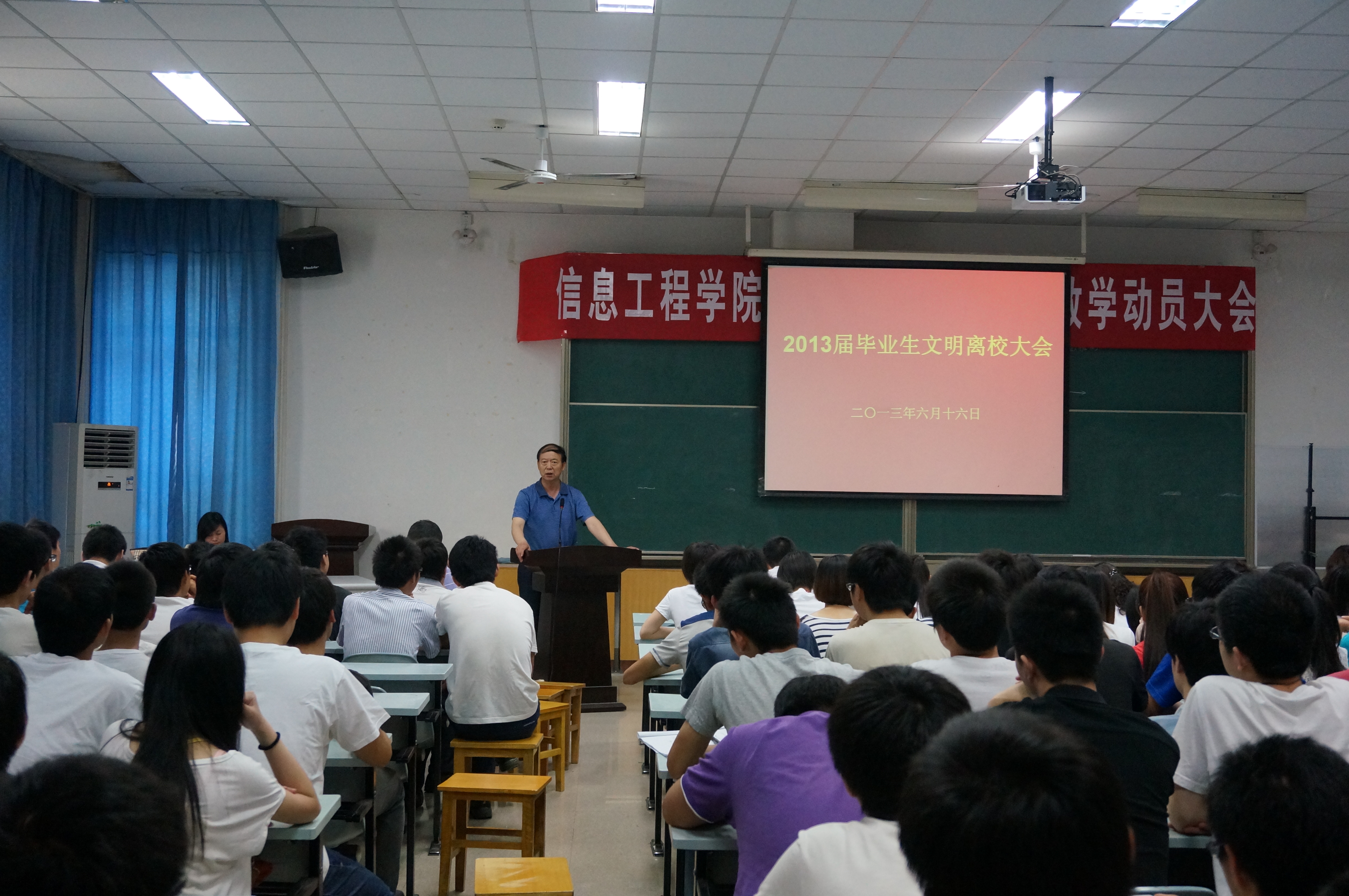 2013年 6月16日上午,304am永利集团在学院实验室M2教室召开了2013届毕业生文明离校教育大会。公司党委书记樊世明、党委副书记何卫军、副经理张阳及各办公室负责人、毕业班班主任、辅导员和在校毕业生参加了会议。会议由党委副书记何卫军老师主持。
