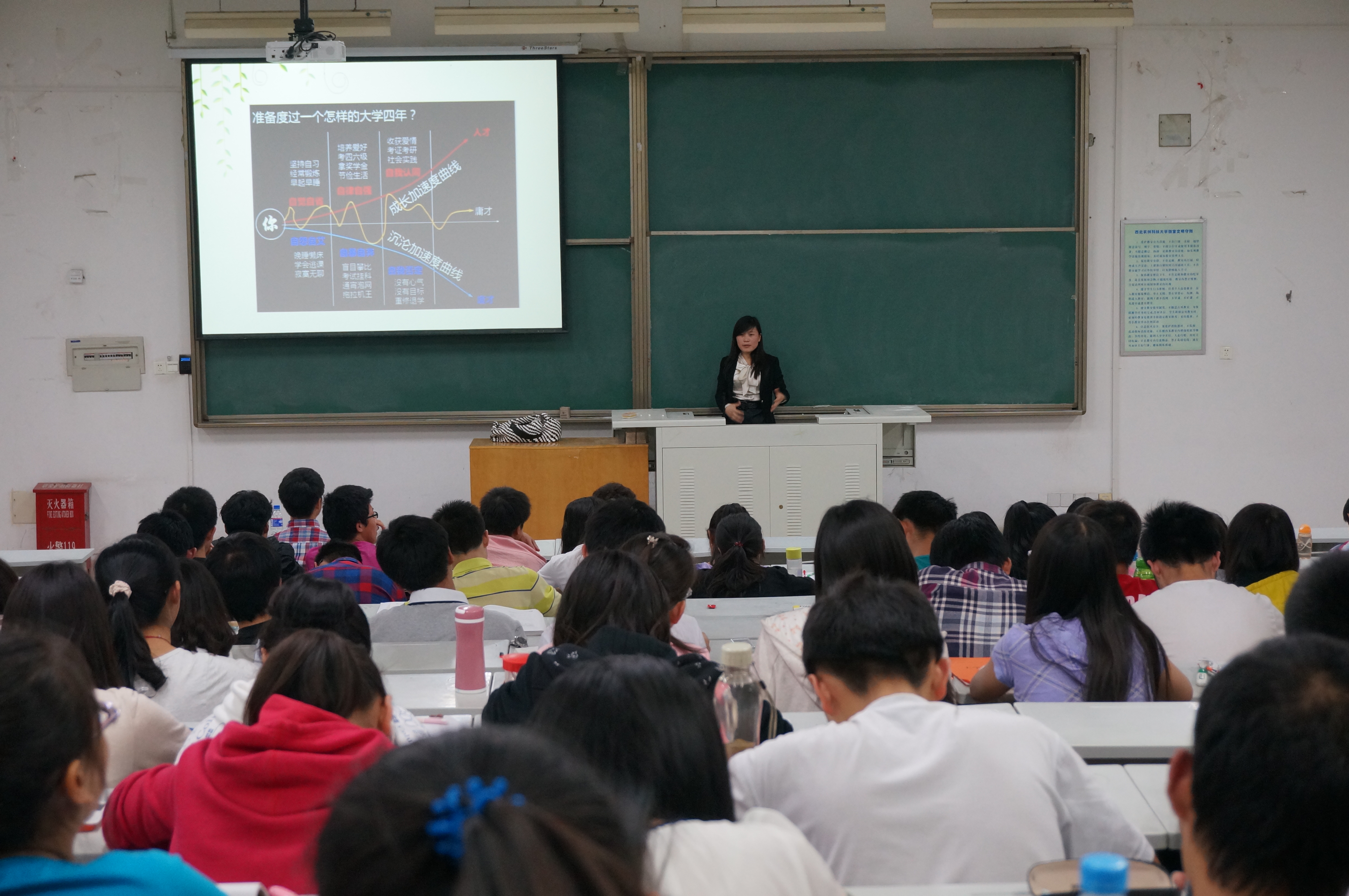 王淑珍老师围绕如何度过迷茫期,如何做个有目标的人,以及认同优胜劣汰的原则展开讨论。随后,王老师通过举近几年毕业生的事例,让同学们对如何规划未来老员工活有了更为深刻的认识。紧接着,她针对老员工的职业生涯进行了剖析。对此,同学们产生了强雷的共鸣。最后,王老师给同学们提出了诸多对于大学学习和生活的建议。