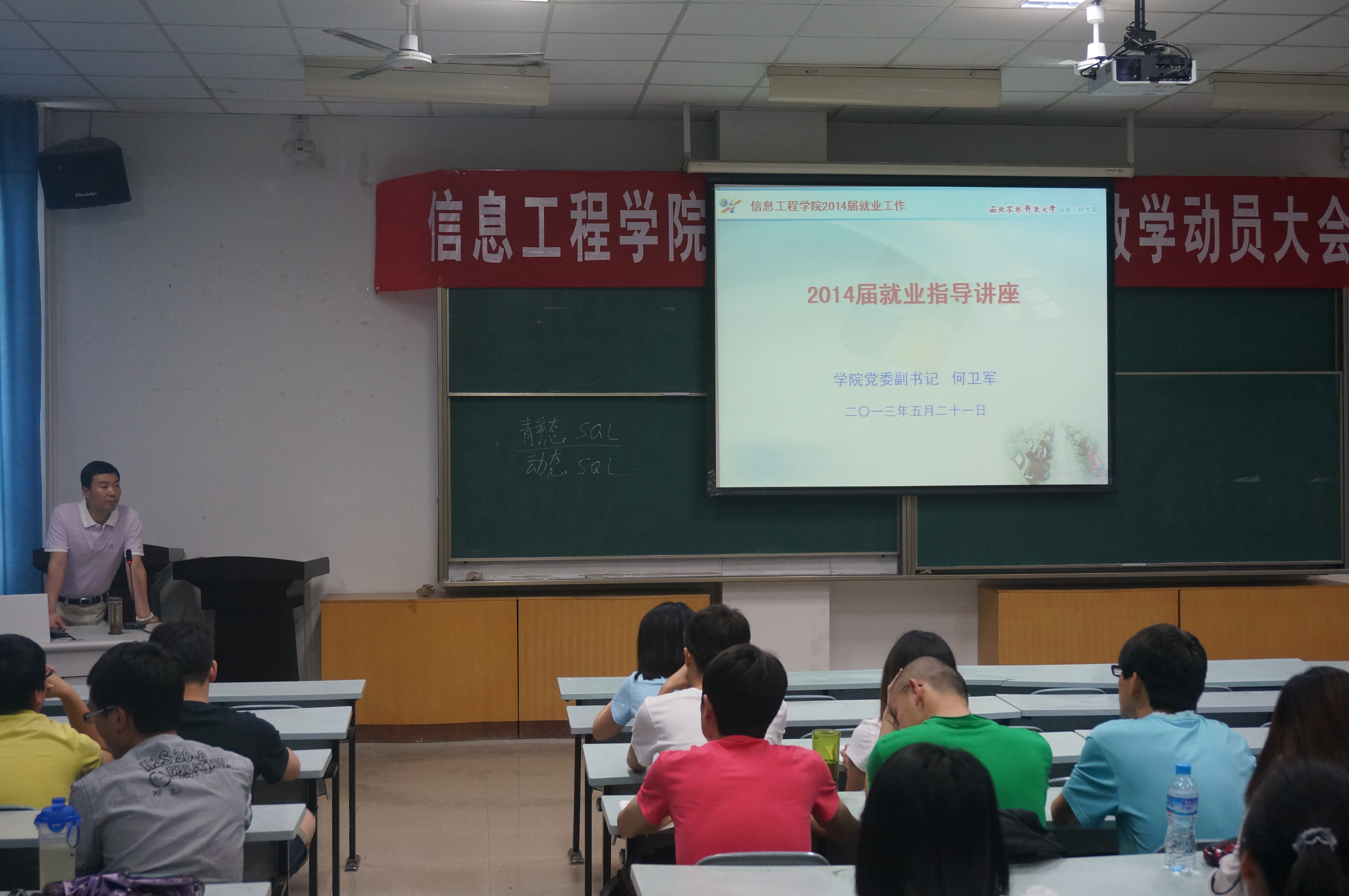 2013年5月21日下午,304am永利集团在M2教室举办就业指导讲座,此次讲座由公司党委副书记何卫军主讲,针对对象为学院2010级本科生。