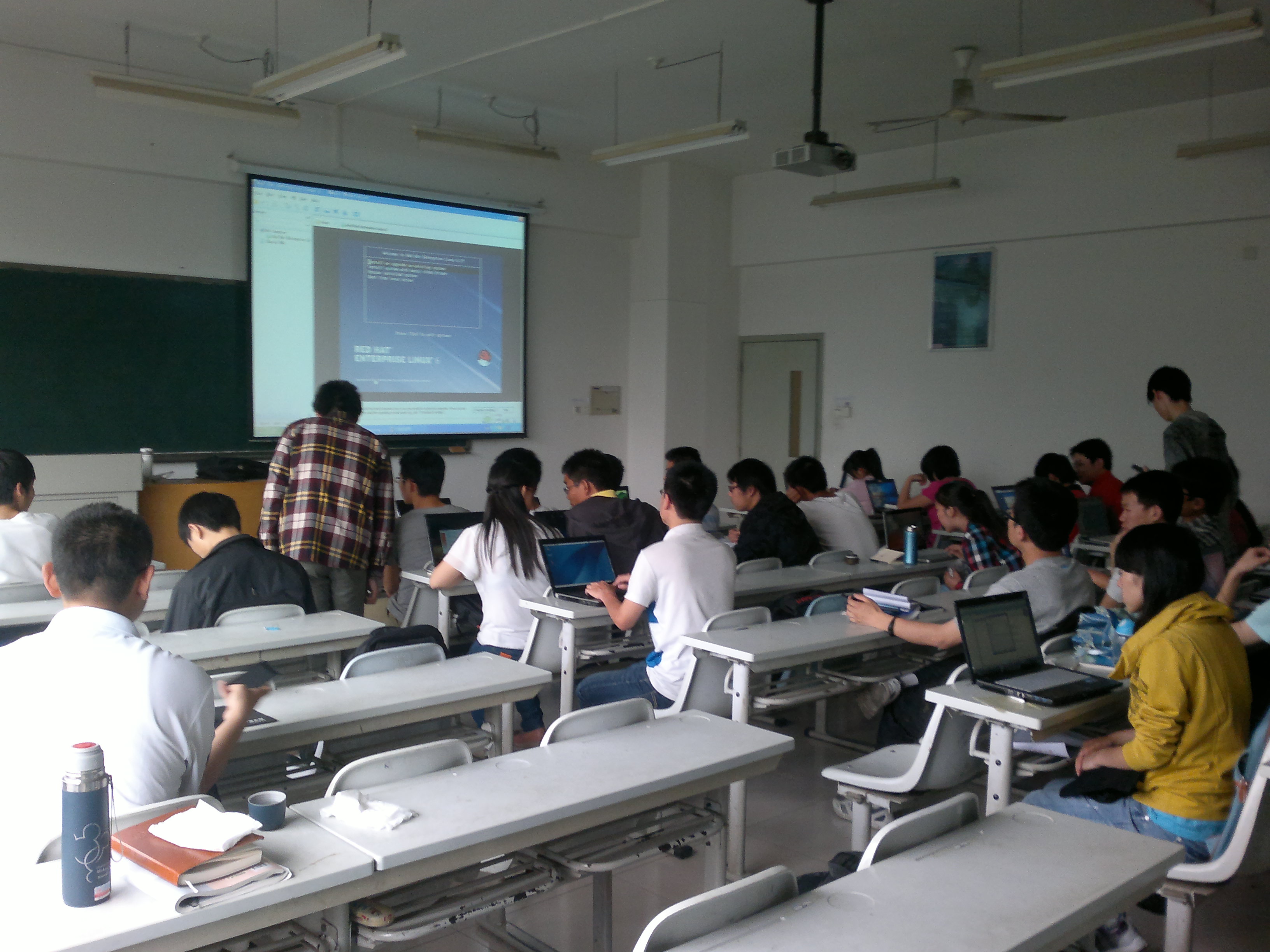 5月5日下午,天空飘着蒙蒙细雨,但新成员仍然积极赶到了培训教室。校新动力协会会长、上届Linux小组负责人、培训主讲陈金亚同学在3点开始了本次培训。