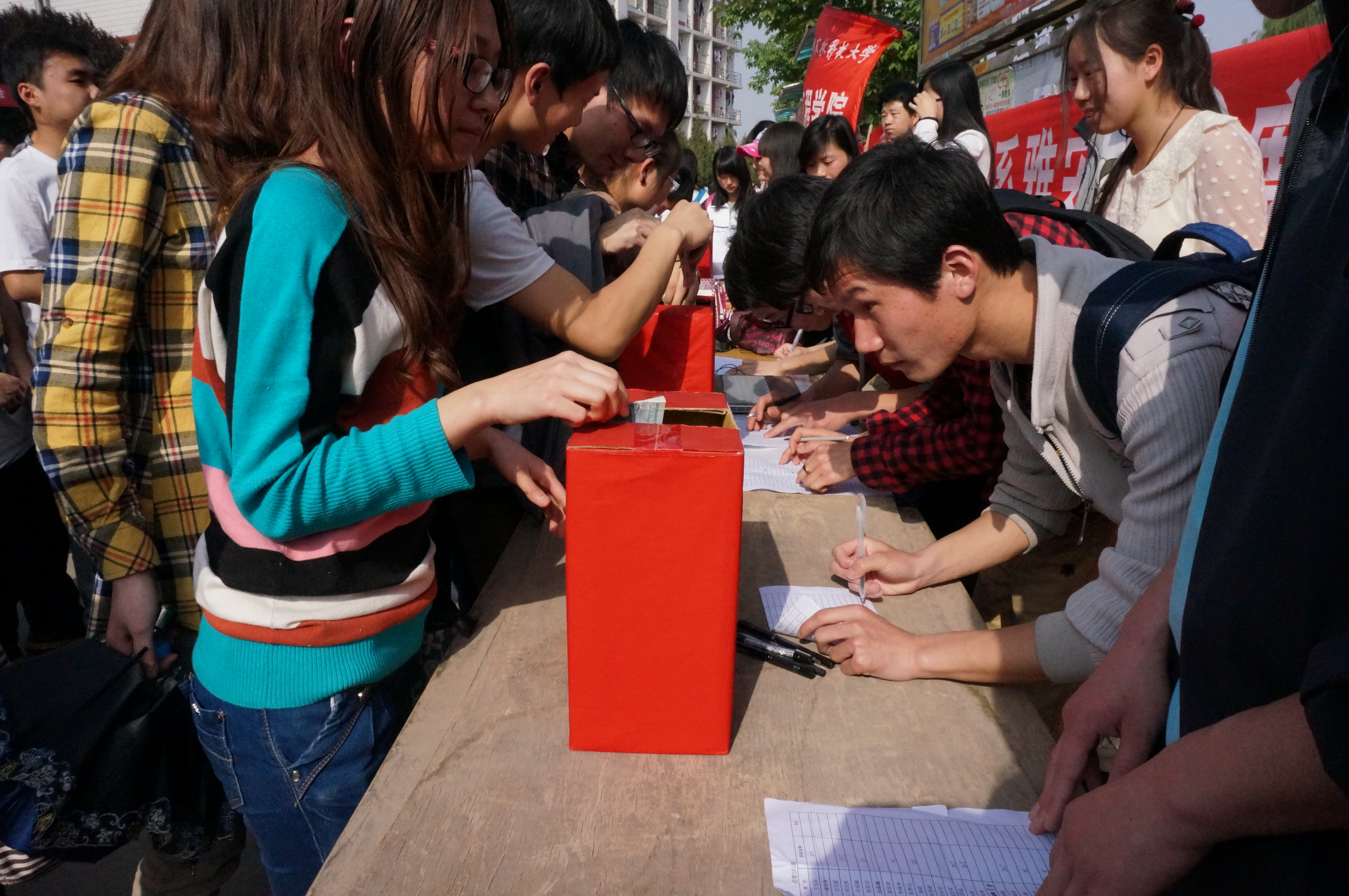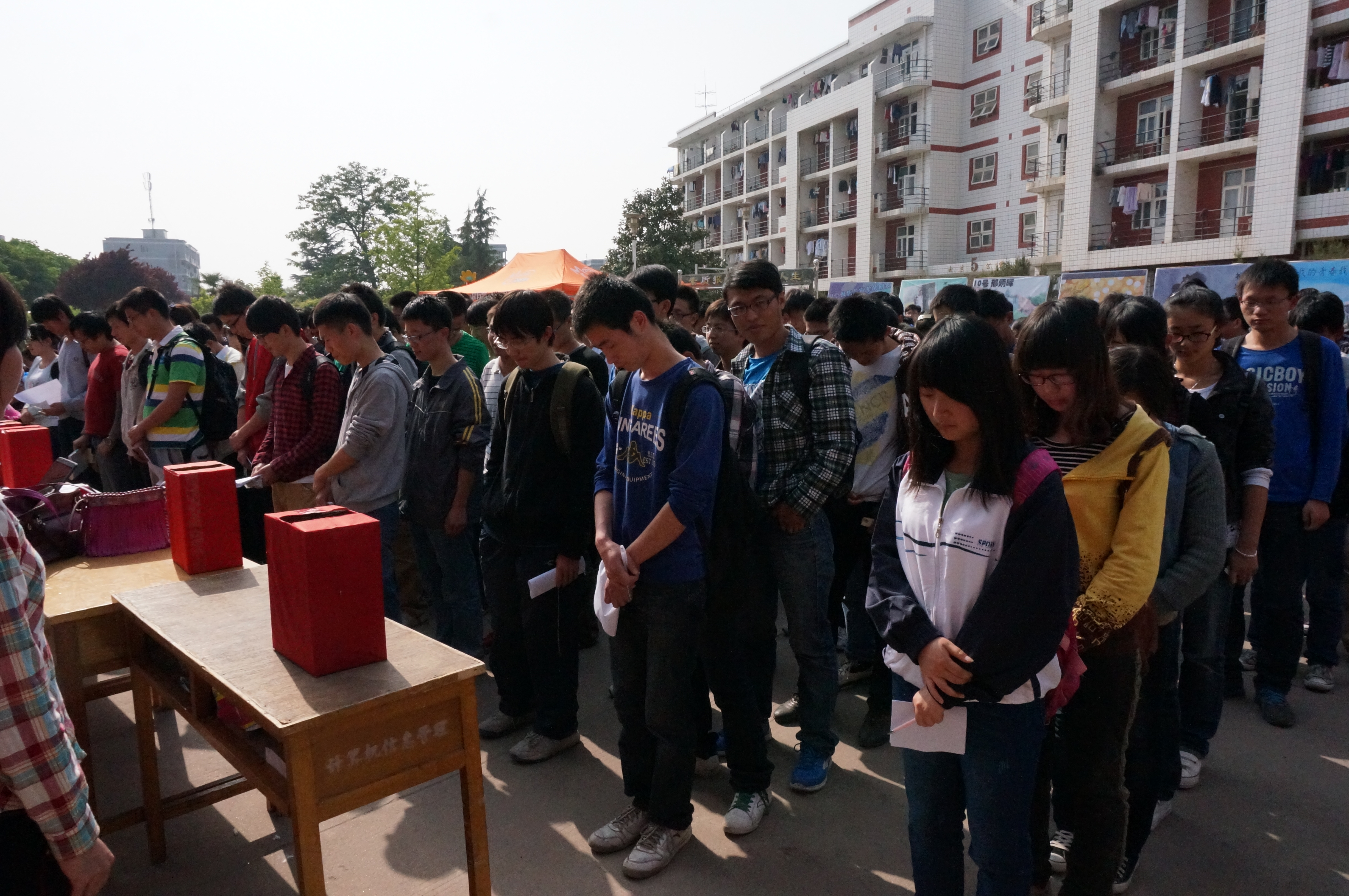 4月25日下午,信息学子在学校西区自发组织为雅安灾区祈福募捐活动。