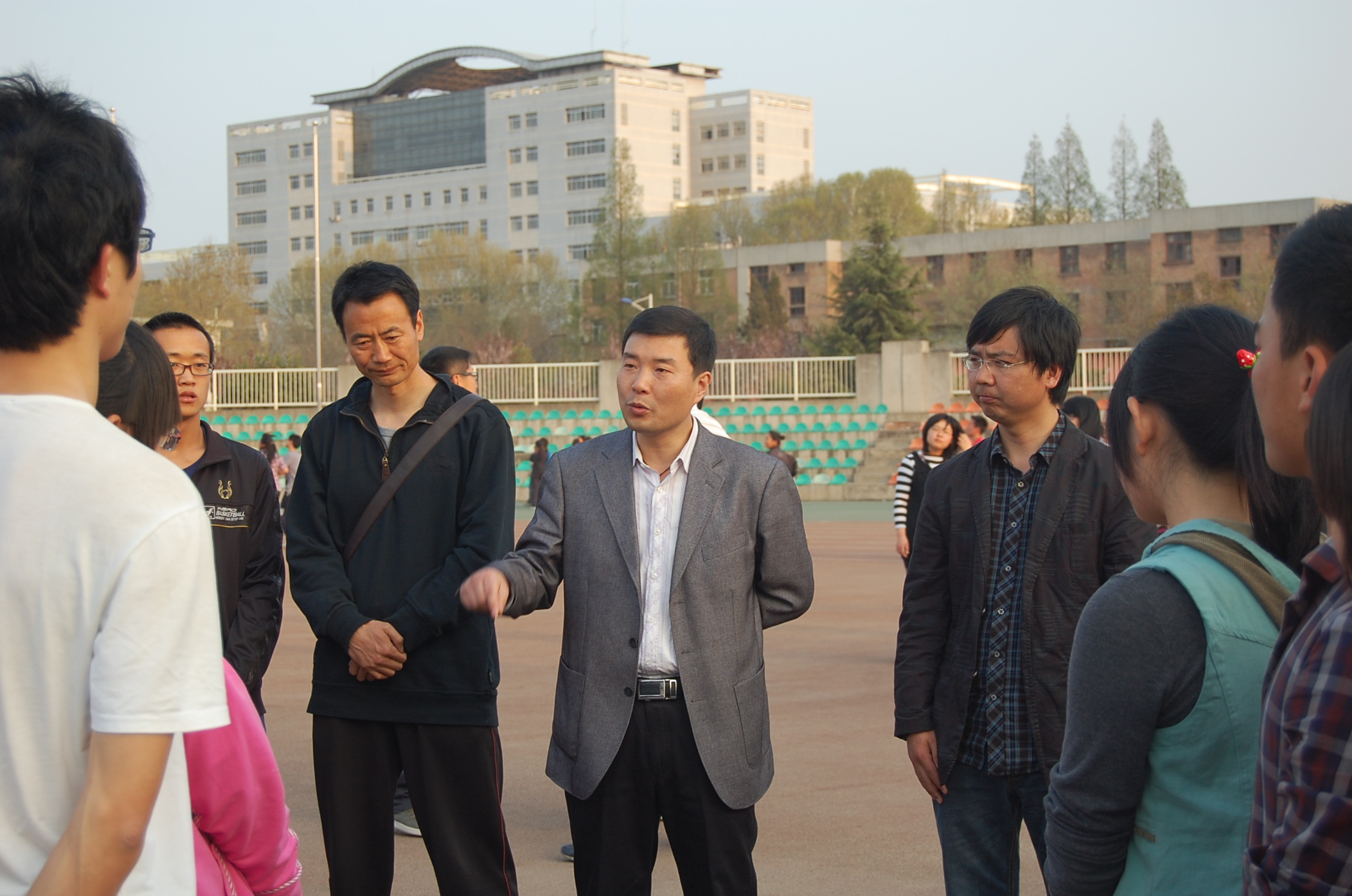 首先,何书记在田径场观看了运动员们的训练,并与公司体育辅导员杜养军老师进行了深刻交谈。何书记代表学院向杜养军老师表达了深深的谢意,感谢杜老师为公司体育运动付出的心血。同时,杜养军老师也向何书记详细介绍了公司运动员们的训练情况。
