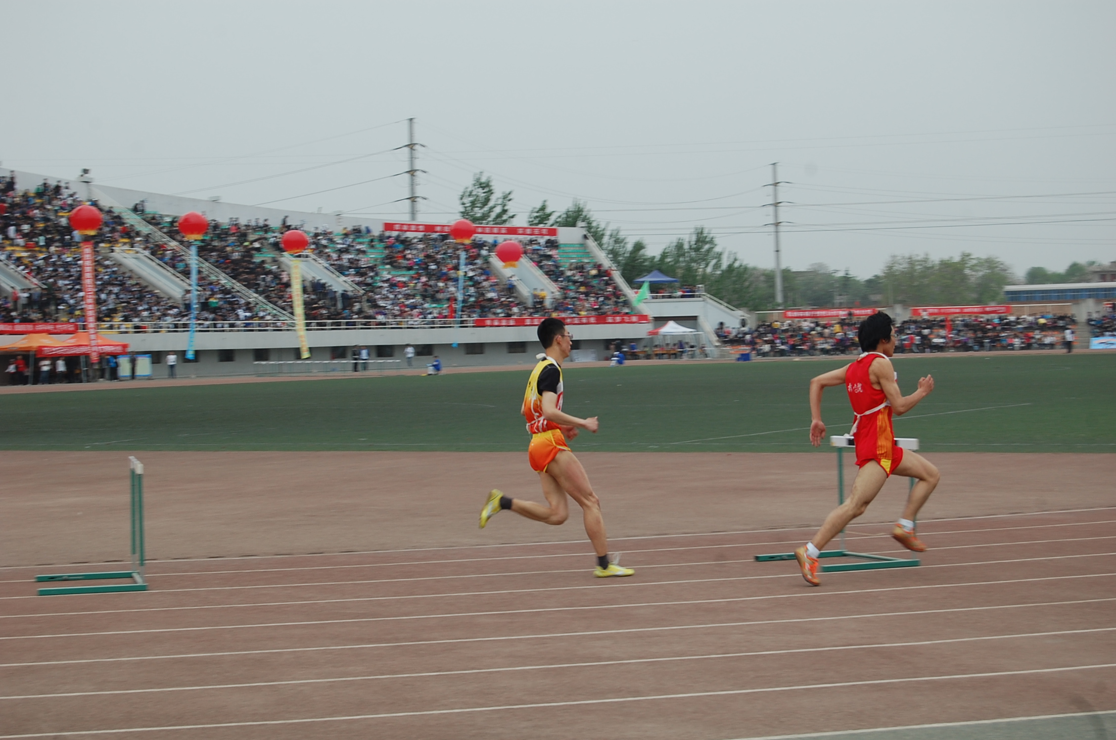 4月19号下午,校运会男子400米栏比赛如期举行,公司王秋实同学参加此项比赛,最终不负全院同学所望,勇夺男子400米栏冠军。