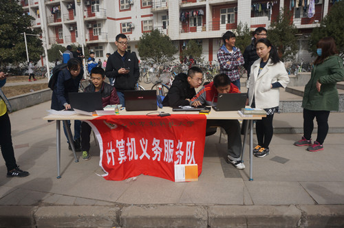 3月5日上午9点半,计算机义务服务队的队员们在西超小红人前举办“学雷锋”电脑定点维修活动。希望给同学们普及更多计算机知识,为更多的人解决各种计算机问题,并让越来越多的人科学地使用电脑。活动中,不断有同学把电脑送来,杀毒、装软件、重装系统——队员们有条不紊的帮同学们维修着,受到了同学们的一致好评。