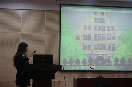主持人介绍了活动的程序、规则及评分细则后,动漫设计大赛在热烈的掌声中拉开了帷幕。13支来自各个学院各个年级的队伍依次上台进行作品展示和自信答辩。《龙游浅滩》、《骑白马的密林女王》、《陪小红星走过漫长岁月》等优秀作品首次展现在大家面前,给观众带来了一场视觉盛宴。参赛选手们充分发挥想象力,灵活运用鲜明的动漫色彩,振奋人心的音乐,壮观的图片等素材淋漓尽致地表现了他们的爱国热情,展示了他们的设计才华。