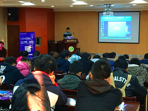 报告会中,微软公司主讲人倪真老师首先向在场同学们展示了最新的一些微软黑科技,例如微软混合现实技术(MR)、微软云计算平台(Azure)、微软认知服务、人工智能助手小娜、体感交互技术等。各种新技术的展现瞬间调动起在场同学的积极性和兴趣,也对此次比赛更加期待。