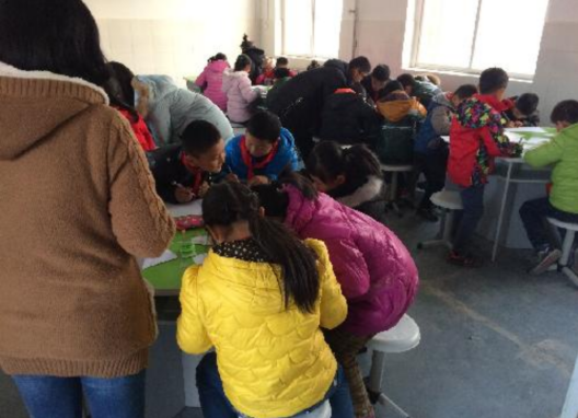 同学们与孩子们开始一起玩耍,抢凳子、老鹰捉小鸡,这些游戏成了同学们与孩子们交流的方式,孩子们一起把一位志愿者围了起来,和他拉着手一同转圈圈;几个孩子伴随着音乐的节奏正玩着抢凳子;还有的孩子在一位志愿者身后排成长长的一队,似乎是在准备着老鹰捉小鸡的游戏......小雪刚过,屋外寒风正刮,而屋子里却是暖和的。