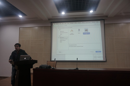 黄喆先生主要讲了毕业薪酬收入走势、从事职业特点及专业对口程度,企业人才需求及择业考虑因素。他讲到,移动互联网具备很多传统互联网所不能企及的优势,传统互联网可能面临被移动互联网革命的风险。移动互联网APP开发就业需具备那些开发技术。而张禾生先生则就移动互联网APP开发现状,IOS开发需掌握技术及特点,以及IOS开发之C语言之指针技术进行了讲解。