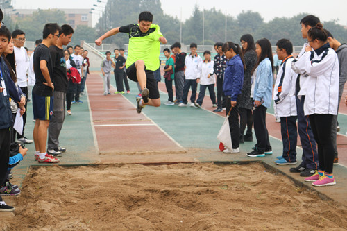 跳高和跳远总能博得众人眼球,因而也在你的脑海中挥之不去。男子跳远、三级跳、男子跳高,围观的同学把场地圈了起来,一阵阵掌声为一个个精彩瞬间喝彩称赞。